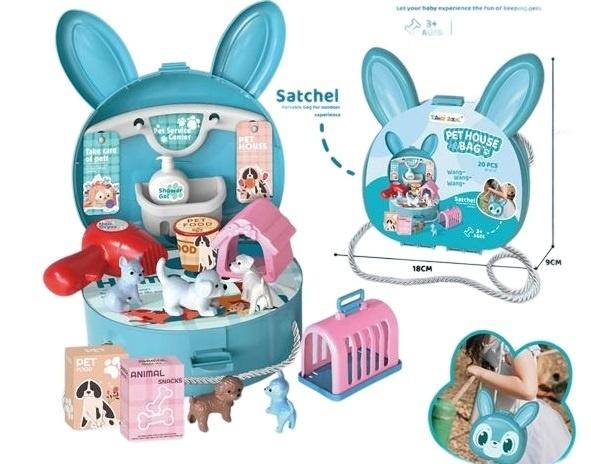 Odkryj magiczny świat opieki nad zwierzętami z wyjątkowym zestawem Pet House Bag, który łączy w sobie funkcję modnego akcesorium i rozbudowanej zabawki tematycznej. Ta błękitna torebka w kształcie przyjaznego króliczka to tak naprawdę w pełni wyposażony salon piękności dla małych pupilów, który otwiera przed dzieckiem nieograniczone możliwości zabawy. Dzięki dołączonemu sznurkowi zestaw staje się wygodną saszetką, idealną do przewieszenia przez ramię, co sprawia, że ulubione figurki mogą towarzyszyć maluchowi podczas każdej codziennej wyprawy.
