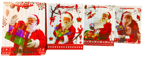 Torebka laminowana 130 gsm Mikołaj set A Duża A4 (26x32x10) Cena dotyczy 1 opakowania Pakowane 12 szt, mix 4 wzorów