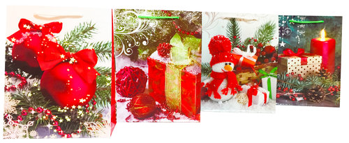 Torebka laminowana 130 gsm Świąteczna Bałwan Prezent Średnia A5 (18x22x8) Cena dotyczy 1 opakowania Pakowane 12 szt, mix 4 wzorów