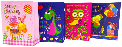 Torebka Lux 210 gsm Glitter wz. Dziecięce Dino Małpa Duża A4 (26x32x10) 12 szt w opakowaniu