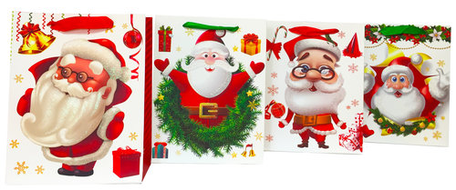 Torebka Lux 210 gsm z brokatem Xmass Santa Duża A4 (26x32x10) Cena dotyczy 1 opakowania Pakowane 12 szt, mix 4 wzorów