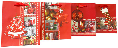 Torebka Lux 210 gsm Hot-Stamp Czerwony Kolaż Duża A4 (26x32x10) cena dotyczy 1 opakowania Pakowane 12 szt, mix 4 wzorów