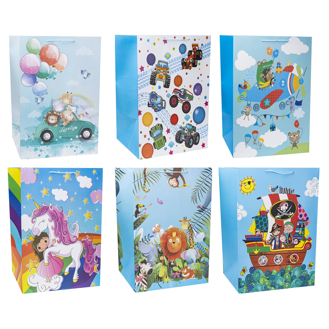 Torebka ozdobna Lux 210 gsm, pakowana po 12 sztuk, mix 4 wzorów, TD-23000-WB SZEROKIE DNO