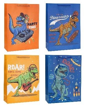Torebka z brokatem Dinozaur 31x40x12cm A3, mix 4 wzorów