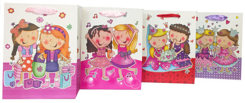 Torebka Lux z brokatem GIRLS set 1 Duża A4 Pakowane po 12 szt. mix 4 wzorów