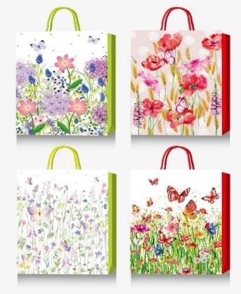 Torebka ozdobna z brokatem Lux 210 gsm, pakowana po 12 sztuk, mix 4 wzorów