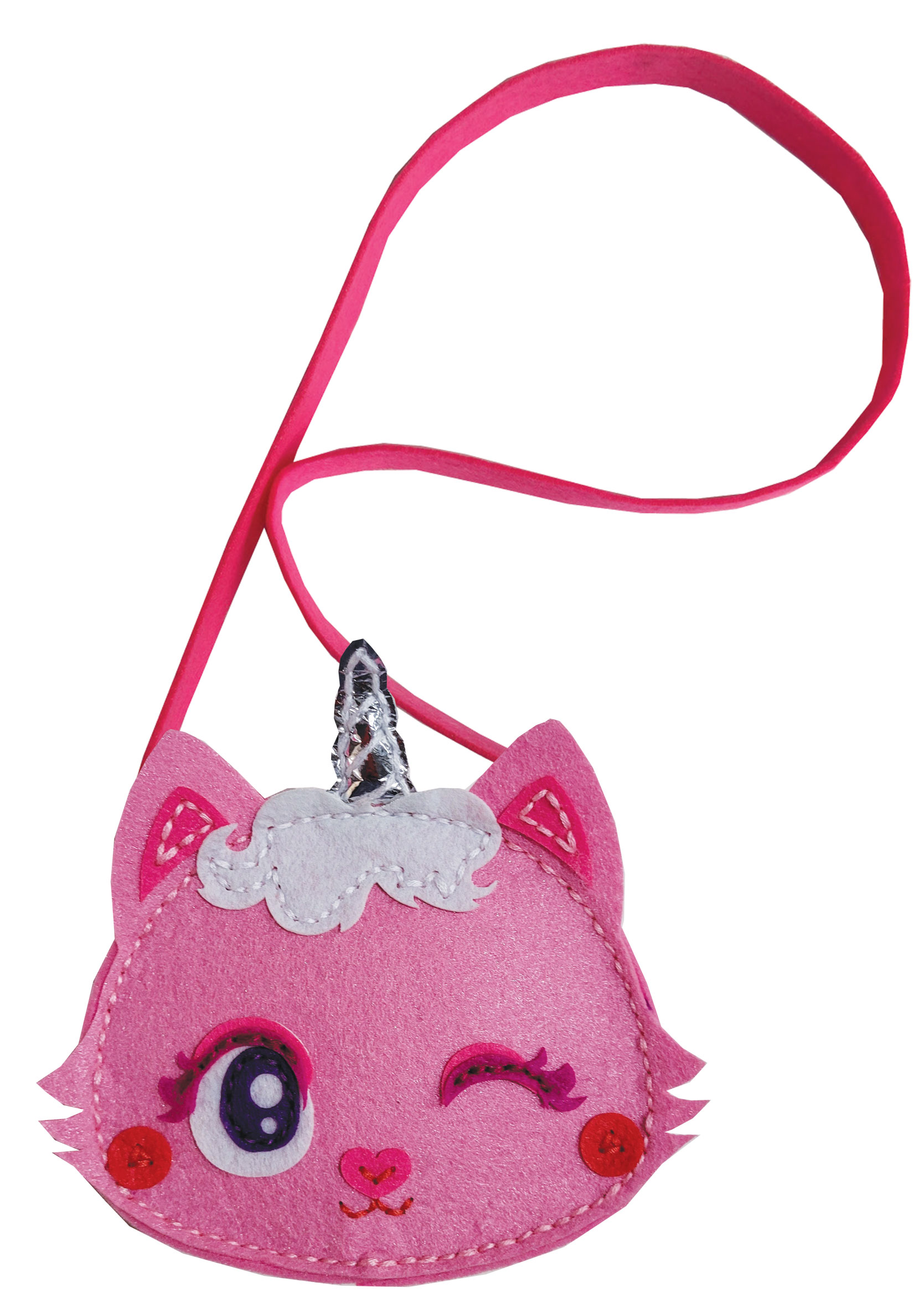 W skład zestawu wchodzą: filcowe elementy gotowe do zszycia, elementy ozdobne, plastykowa igła, bawełniane nici oraz instrukcja.