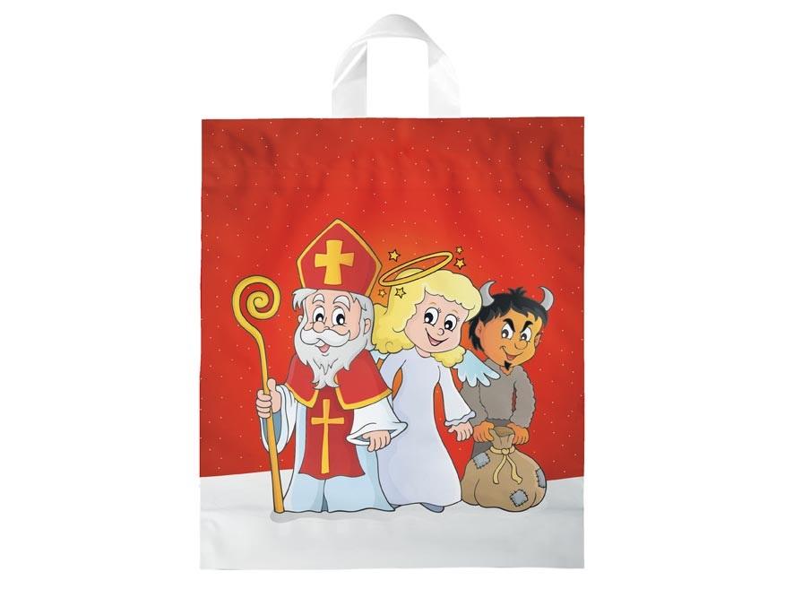 Reklamówka PP Św. Mkołaj. Wymiar: 400mm x 460mm x 80mm (szer. x wys. x gł.) Wyprodukowano w UE.