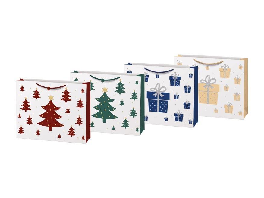 Torebka papierowa z nadrukiem. Torebka ma mocny uchwyt oraz zawieszkę. Wymiar: 250mm x 190mm x 90mm (szer. x wys. x gł.)