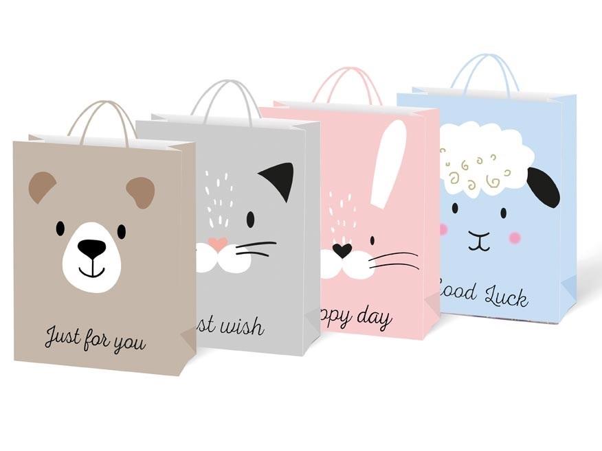 Torebka papierowa z nadrukiem. Torebka ma mocny uchwyt oraz zawieszkę.