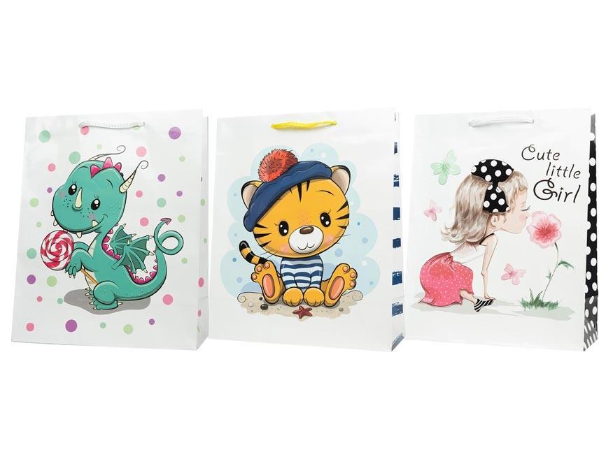 Torebka papierowa z nadrukiem. Torebka ma mocny uchwyt oraz zawieszkę. Wymiar: 330mm x 455mm x 100mm (szer. x wys. x gł.) Wyprodukowano w UE.