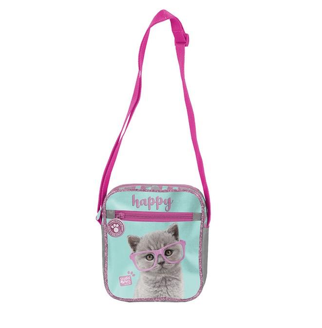 Torebka na ramię Studio Pets błękitno-różowa Happy Friends. Torebka wykonana jest z satyny. Posiada jedną komorę, która jest zamykana na zamek a regulowany pasek umożliwia wygodne noszenie na ramieniu.