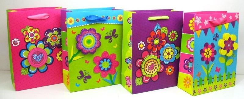 TOREBKA OZDOBNA 3D PIONOWA MAŁA / KWIATKI 17,5X23,5X8, pakowna po 12 sztuk, mix 4 wzorów