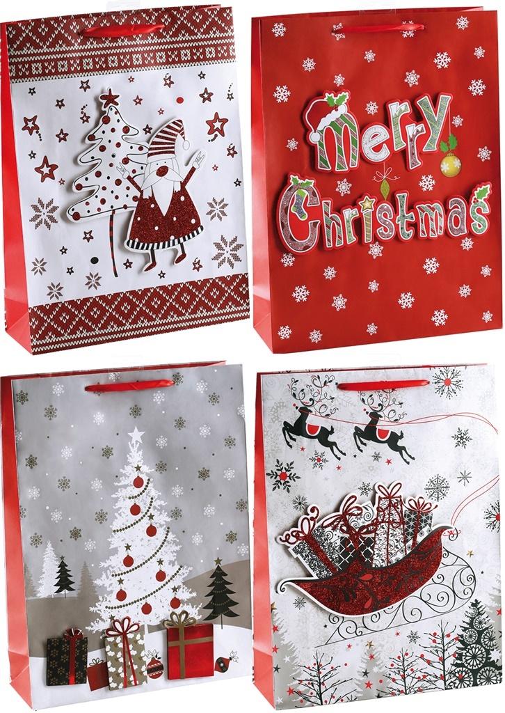 Torba idealna na upominki z okazji Bożego Narodzenia i Nowego Roku NOWOŚĆ: ELEMENT 3D Rozmiar L – wymiary: 30x40x10 cm