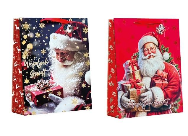 Torba prezentowa świąteczna TB-3 MIKOŁAJ, wymiar 30X40X10, 210g, pakiet mix 12szt wysyłana losowo