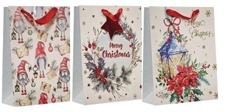 Torba prezentowa świąteczna TB-3, FORMAT 30X40X10, 210g, pakiet mix 12szt wysyłanych losowo.