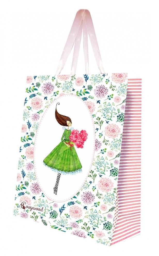 Opakowanie Torebka ozdobna duża Kobieta z bukietem