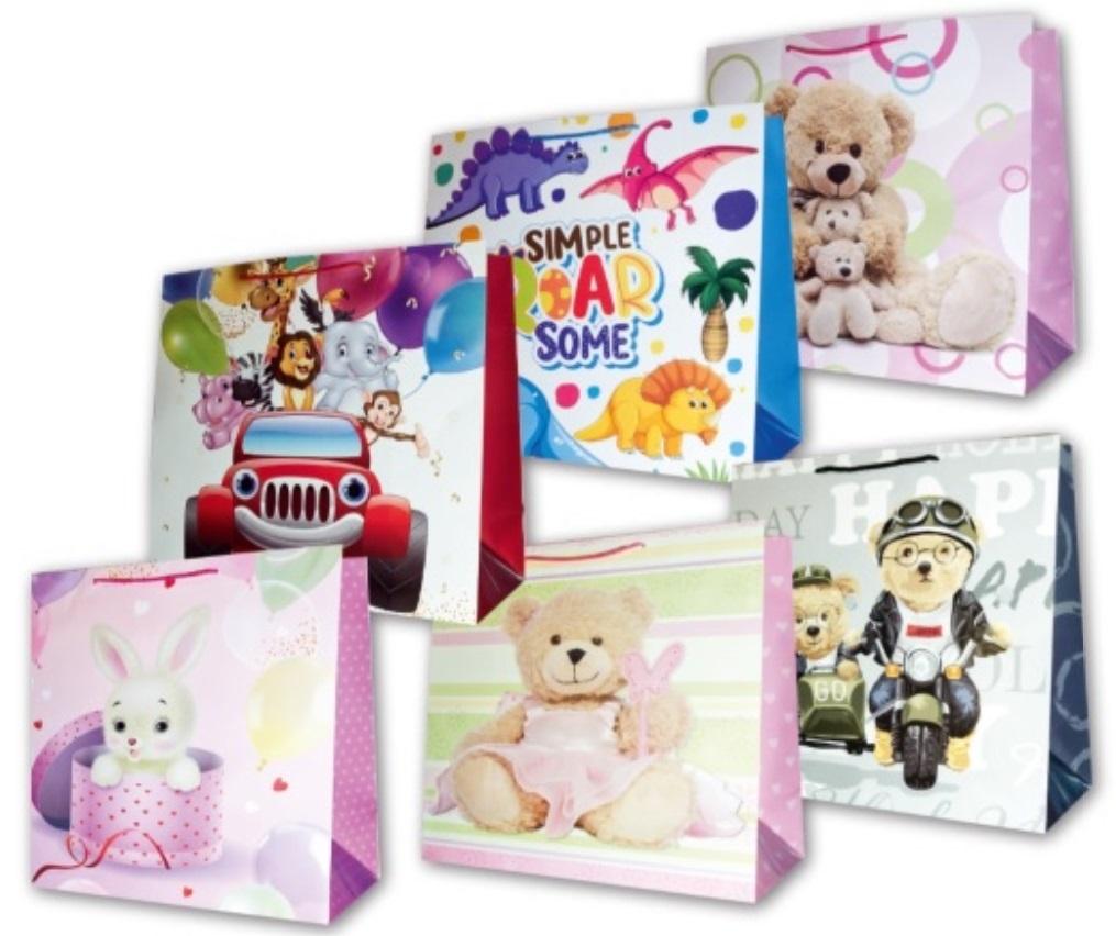 Torebka ozdobna laminowana PL-11 mega dziecięce, mix wzorów, wzór wysyłany losowo.