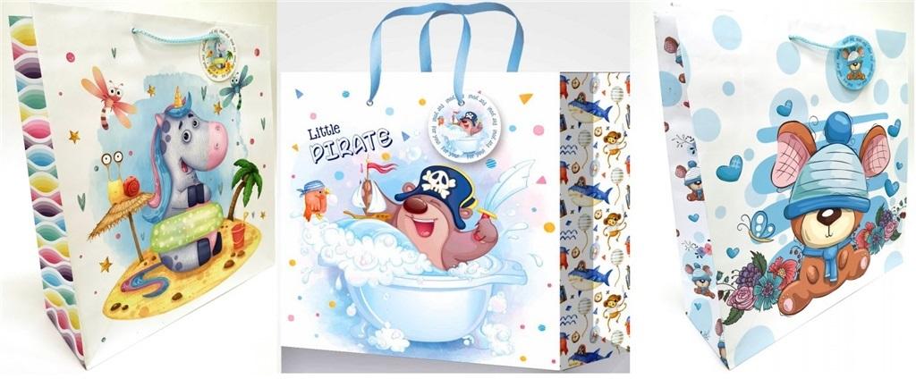 Torebka ozdobna matowa 35x37x12cm, mix wzorów, wzór wysyłany losowo.