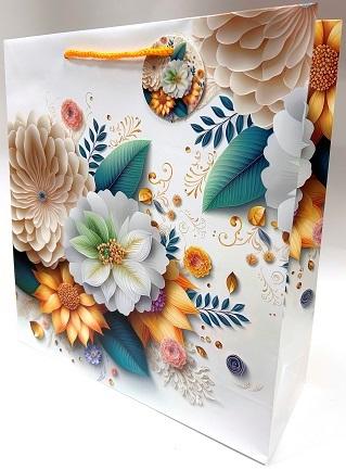 Torebka ozdobna matowa 35x37x12cm białe kwiaty