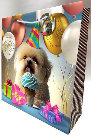 Torebka ozdobna matowa 35x37x12cm urodziny pies GB23163.