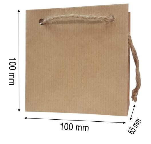 Torebka ozdobna mini o wymiarach 10 x 10 x 6,5 cm.