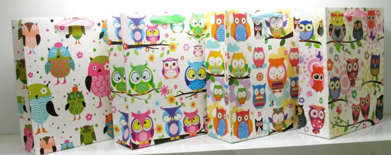 Torebka Ozdobna Płaska Pionowa Śr Sowa 12 sztuk 26X32X10