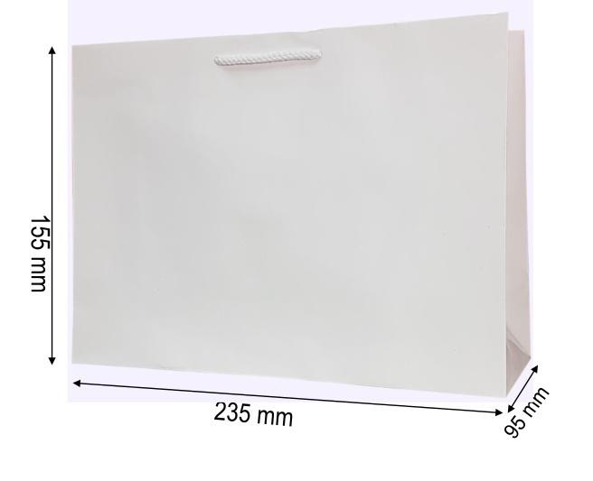 Torebka ozdobna jednobarwna o wymiarach 15,5x23,5x9,5 cm.