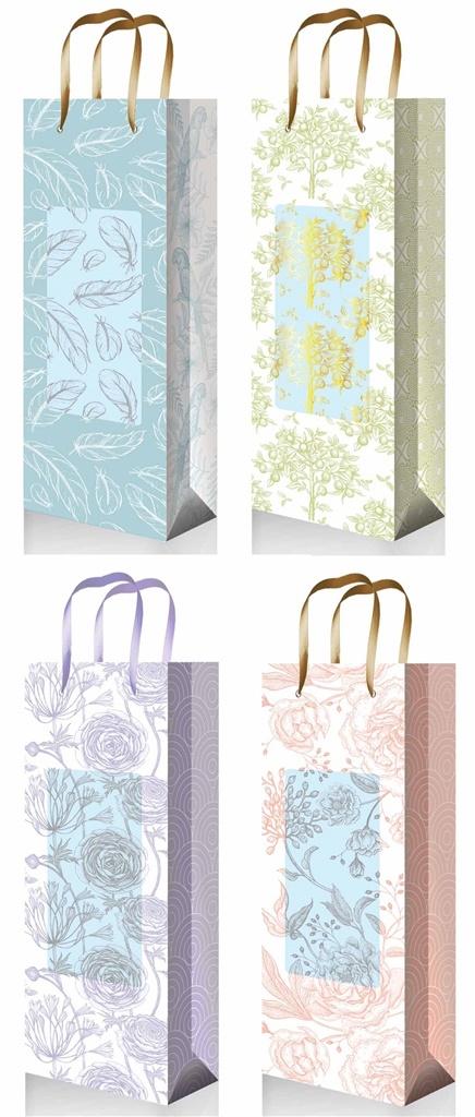 Torebka ozdobna z okienkiem pionowa BUTELKA duża 20271-20274 mix wzorów