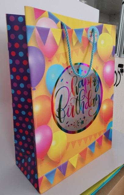 Urodzinowa torebka ozdobna prezentowa z okienkiem. Do torebki dołączony bilecik.