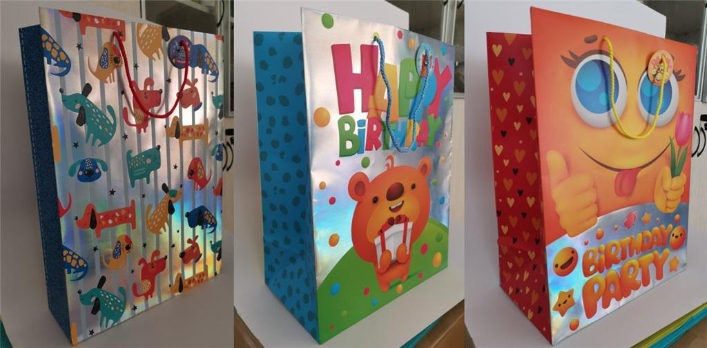 Torebka ozdobna prezentowa złocona. Do torebki dołączony bilecik. Mix wzorów, wzór wysyłany losowo.