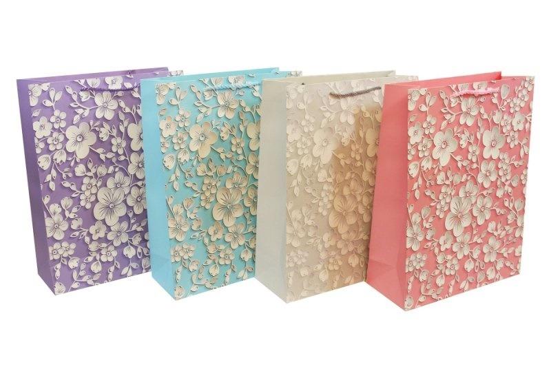 TOREBKA PŁASKA MAŁA KWIATKI TŁOCZONE 18X23X10cm, 4 WZORY, PAKOWANA PO 12 SZTUK.