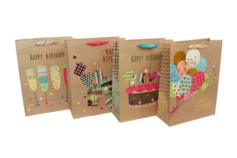 Torebka płaska, mała - urodzinowa eco. Wymiary: 18 x 23 x 10cm. Mix 4 wzorów. Wysyłany losowo!