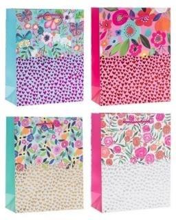Torebka prezentowa 18x23x8cm z motywem kwiatów, mix wzorów, produkt wysyłany losowo, cena za 1 sztukę
