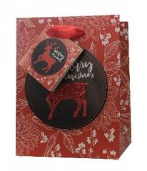 Kolorowa torebka z zapięciem na rzep i satynową kokardą. Efektowny dodatek do prezentu.