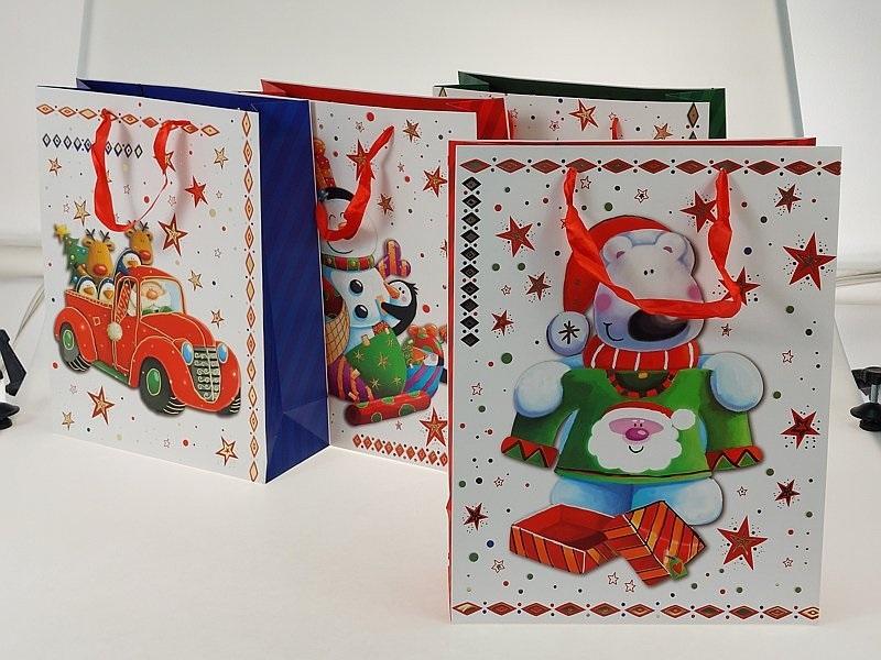 torebka prezentowa z motywem świątecznym; 39x30x12cm
