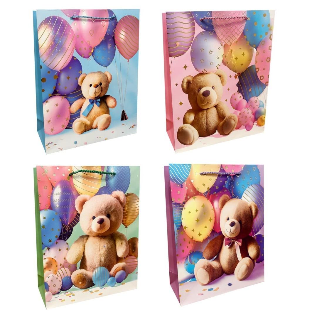 Torebka prezentowa dziecięca L miś z balonami mix