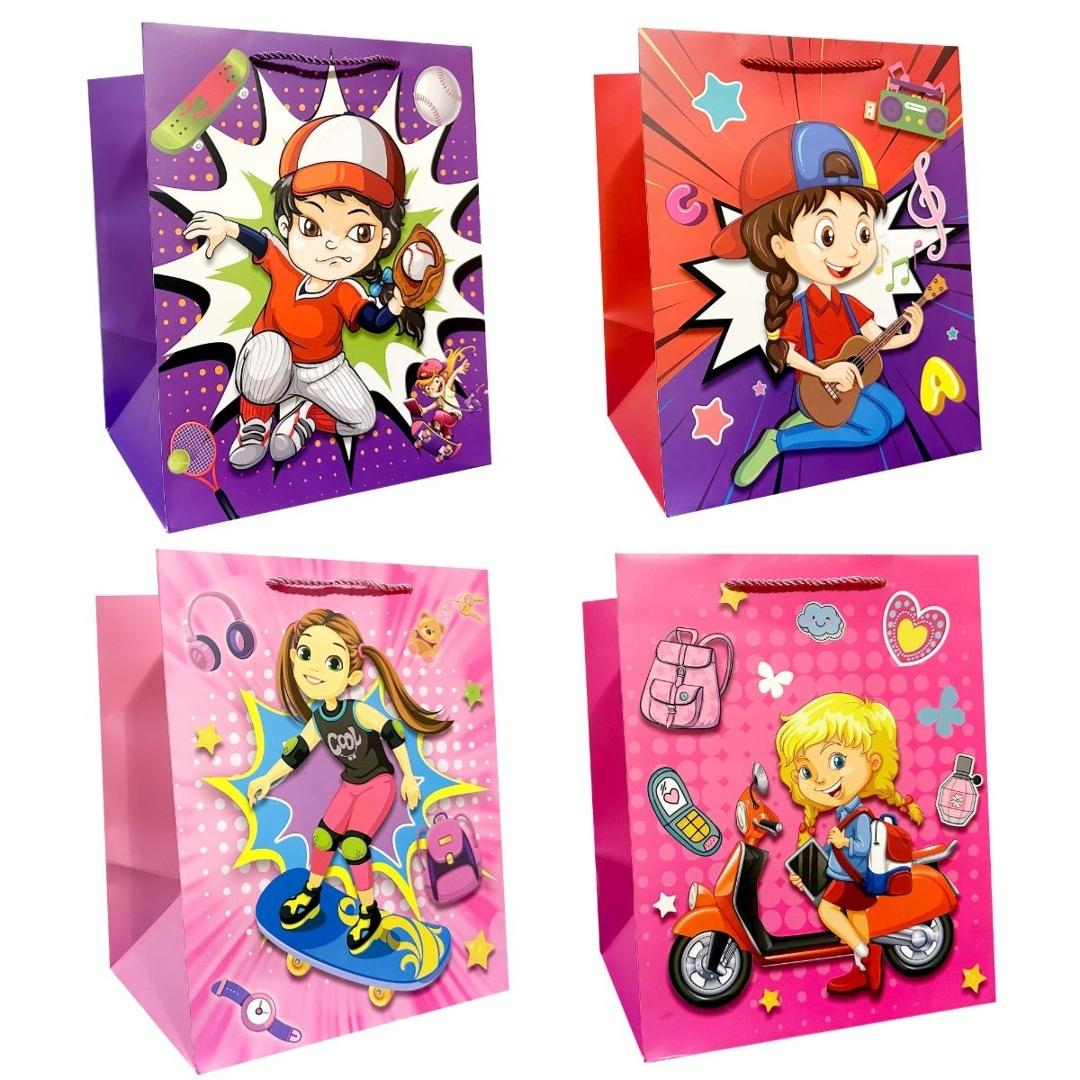 Torebka prezentowa dziecięca M szerokie dno mix