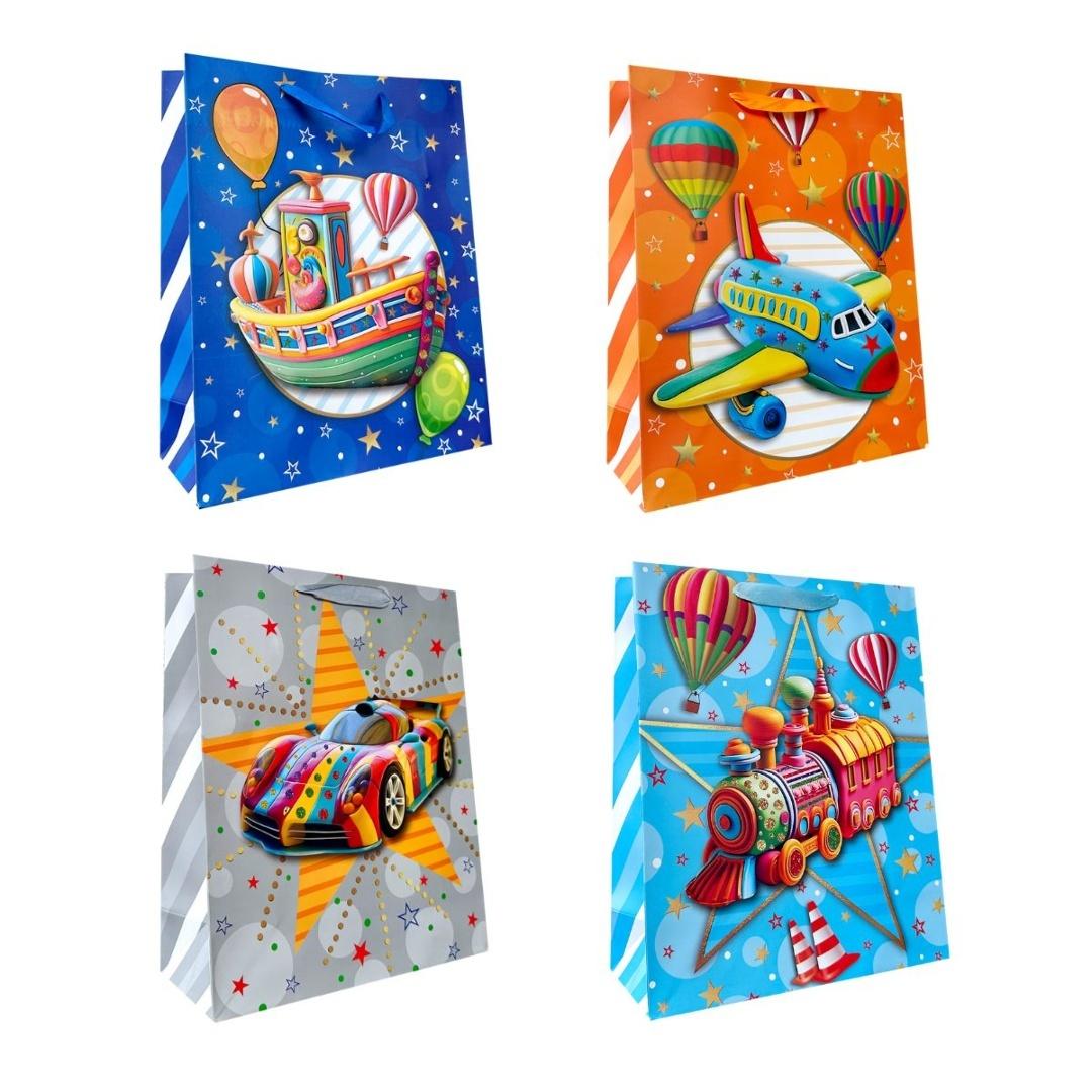 Torebka prezentowa dziecięca S brokat pojazdy mix