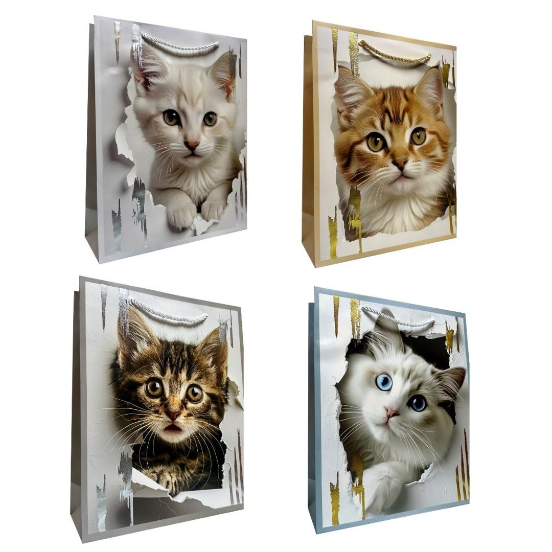 Torebka prezentowa L metalizowana Kotki mix