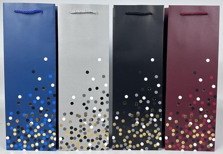 Torebka prezentowa na butelkę Premium. Materiał karton 210 gr. Złocone elementy ozdobne. Uchwyt ze sznurka.