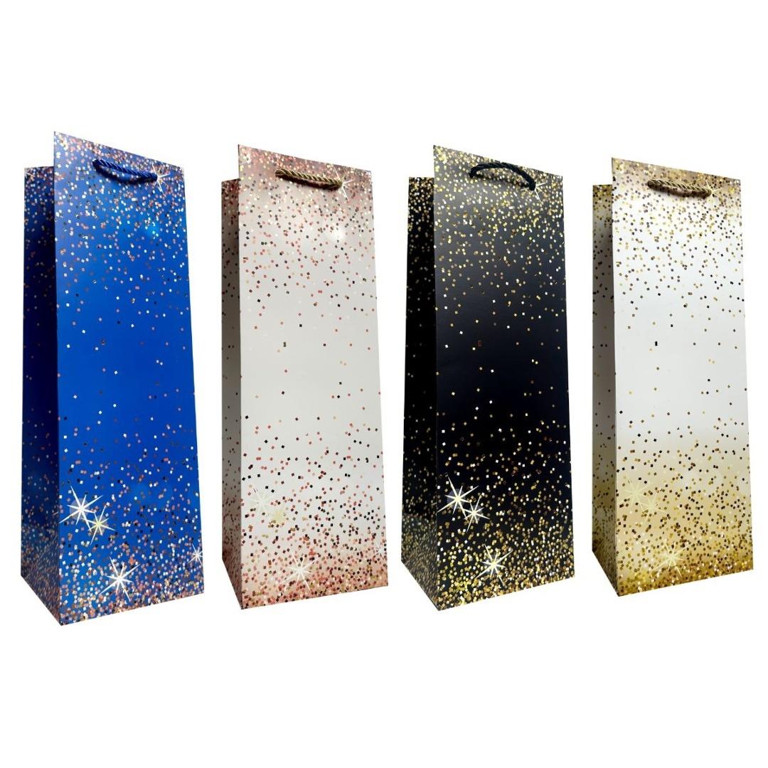 Elegancka papierowa torebka prezentowa na wino wykonana z grubszego papieru o gramaturze 210 g, co zapewnia jej większą trwałość i odporność na obciążenie. Wyposażona w elegancką tasiemkę, który zapewnia wygodny uchwyt i estetyczne wykończenie.
