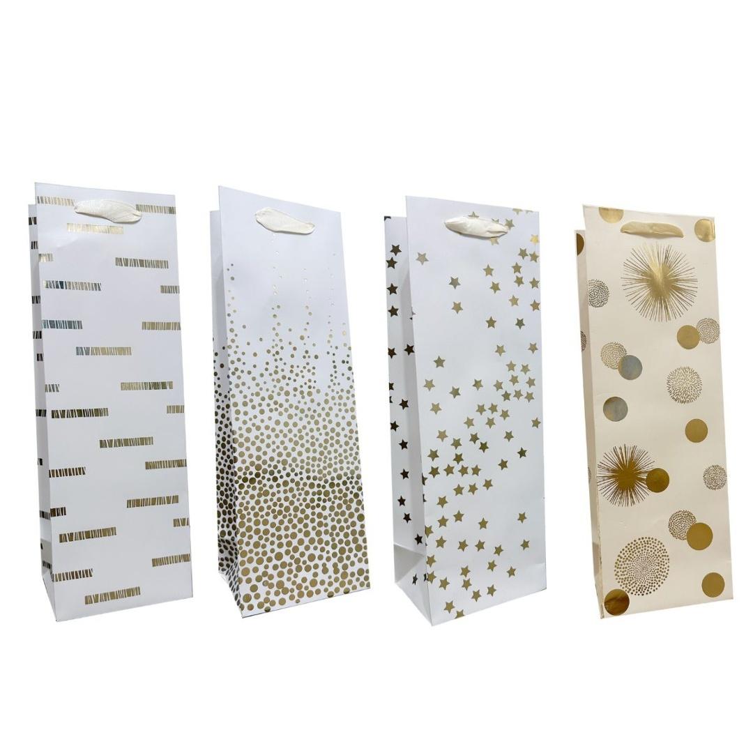 Elegancka papierowa torebka prezentowa na wino wykonana z grubszego papieru o gramaturze 210 g, co zapewnia jej większą trwałość i odporność na obciążenie. Wyposażona w elegancką tasiemkę, który zapewnia wygodny uchwyt i estetyczne wykończenie.