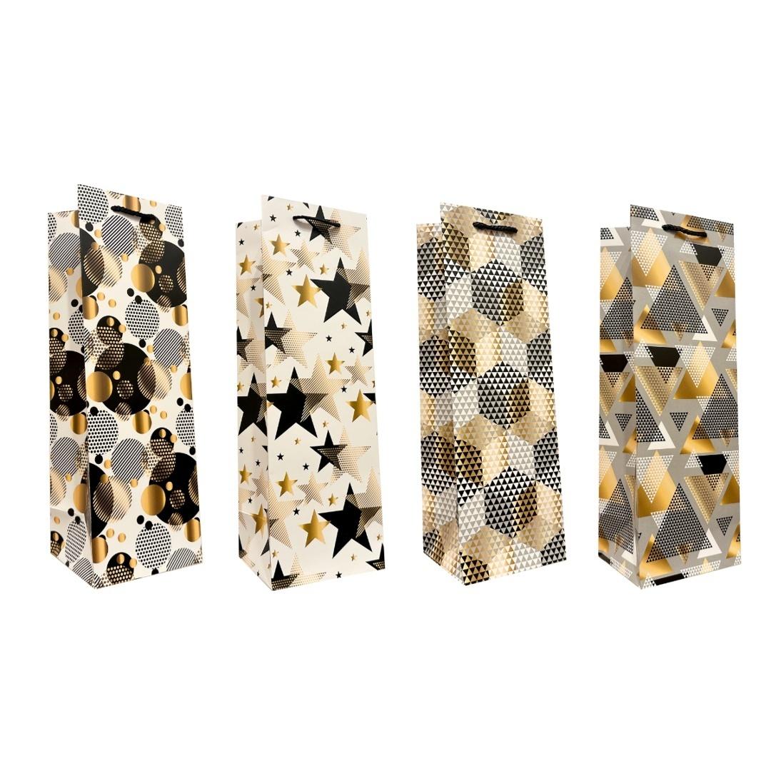 Elegancka papierowa torebka prezentowa na wino wykonana z grubszego papieru o gramaturze 210 g, co zapewnia jej większą trwałość i odporność na obciążenie. Wyposażona w elegancki sznurek, który zapewnia wygodny uchwyt i estetyczne wykończenie.