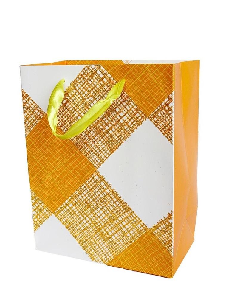 Torebka prezentowa w kolorze biało-pomarańczowym.
