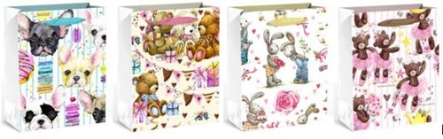 Torebka prezentowa mix 4 wzorów, pakowana po 12 sztuk.
