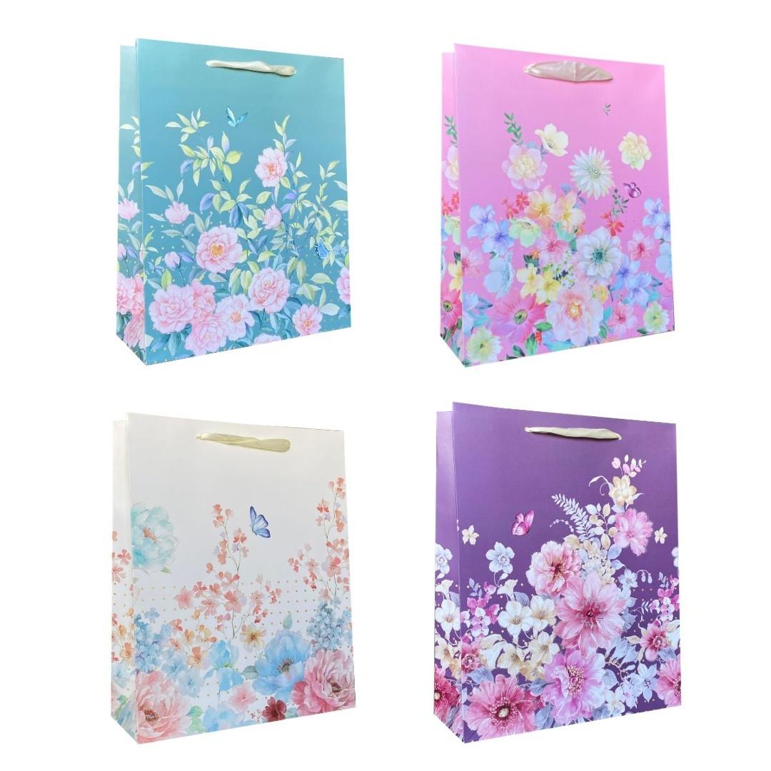 Torebka prezentowa uniwersalna S Kwiaty brokat mix