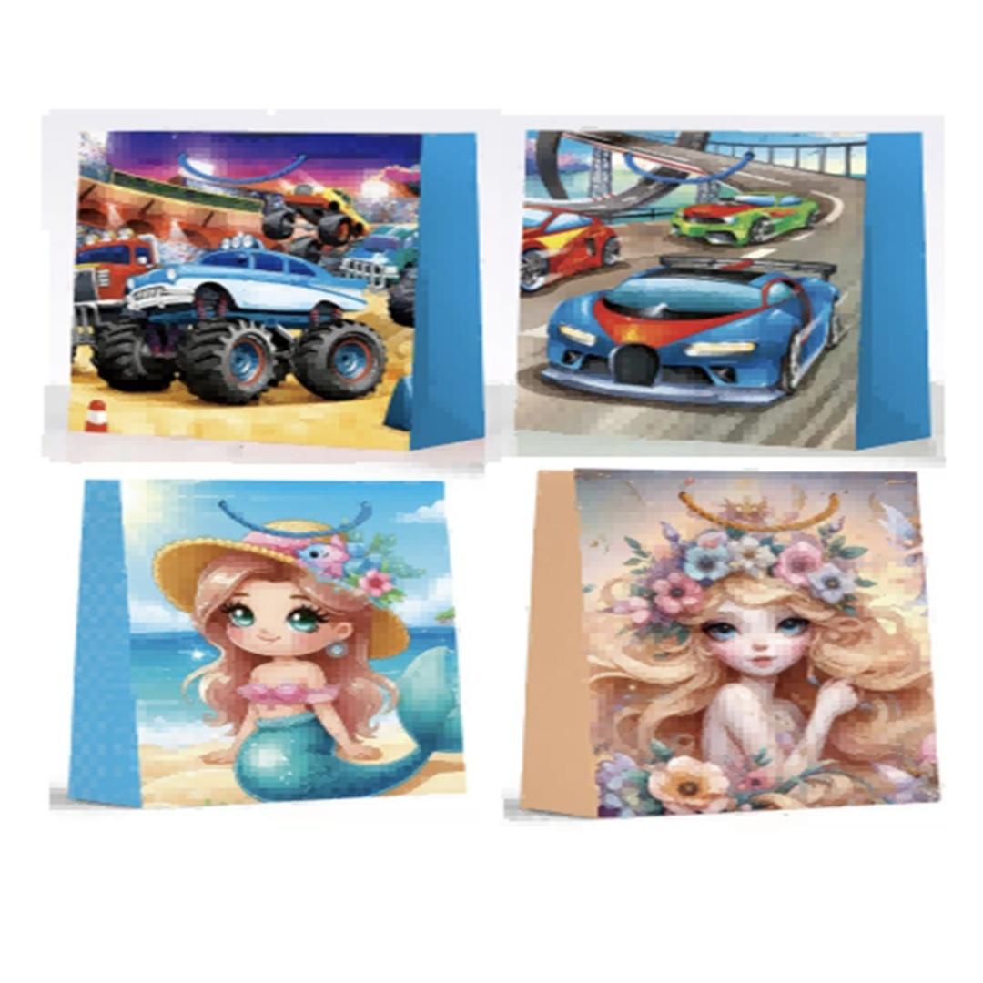 Torebka papierowa dziecięca wykonana z grubszego papieru o gramaturze 210 g, co zapewnia jej większą trwałość i odporność na obciążenie. Wyposażona w grubszy, kolorowy sznurek, który zapewnia wygodny uchwyt i estetyczne wykończenie. To praktyczne opakowanie, które podkreśla wartość wręczanego prezentu.