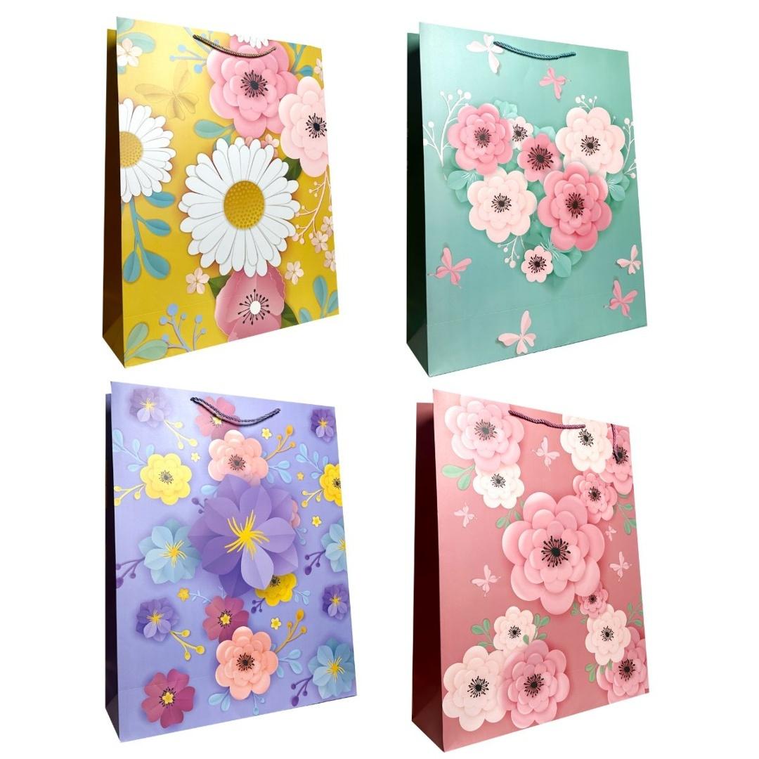 Torebka prezentowa XXL Kwiaty szerokie dno mix