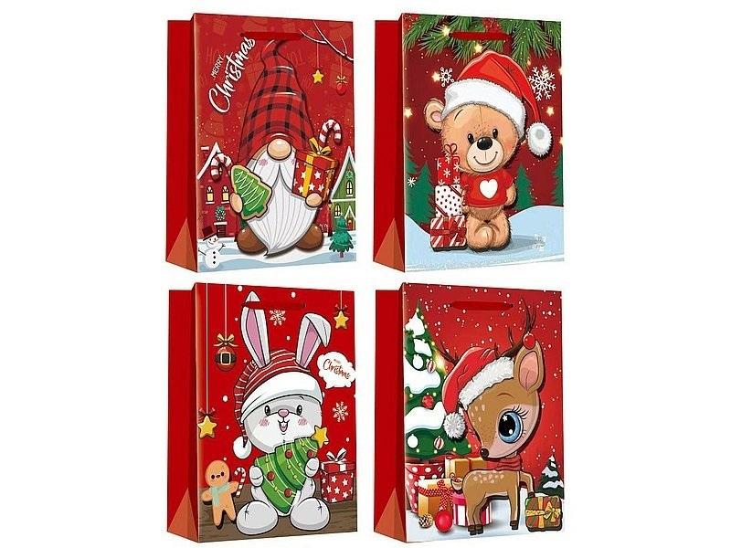 Torebka prezentowa z motywem świątecznym 32x26x10cm MIX